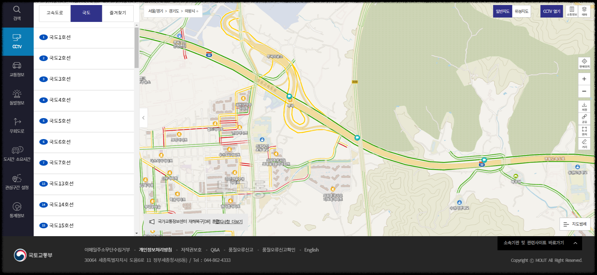 또한 원하는 국도 구간을 빠르고 효율적으로 검색 가능하며 국도 외에도 고속도록 CCTV나 실시간 도로 CCTV 확인이 가능합니다.