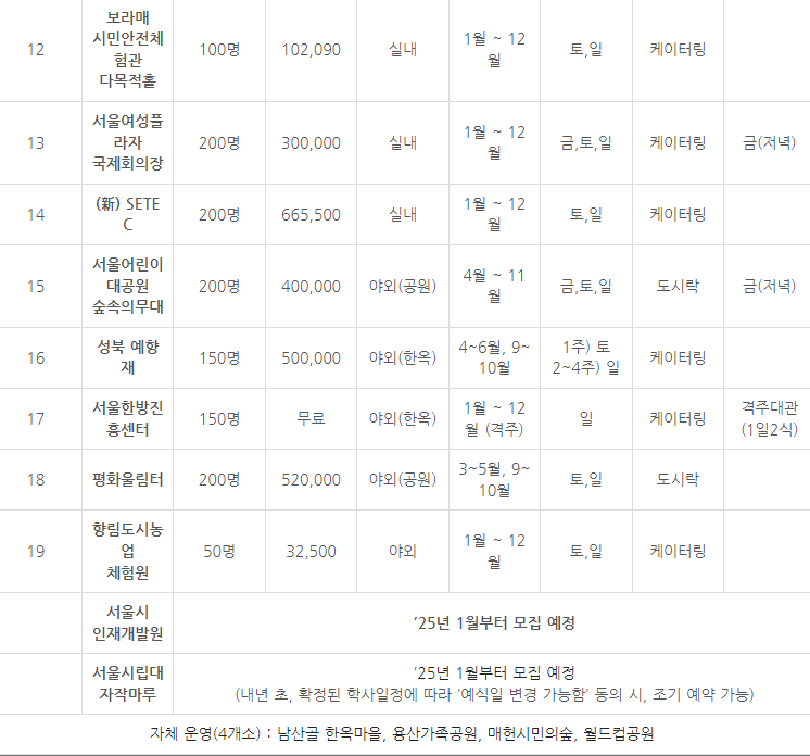 50명 수용 가능 / 대관료 무료 / 야외 진행 / 토요일과 일요일만 진행